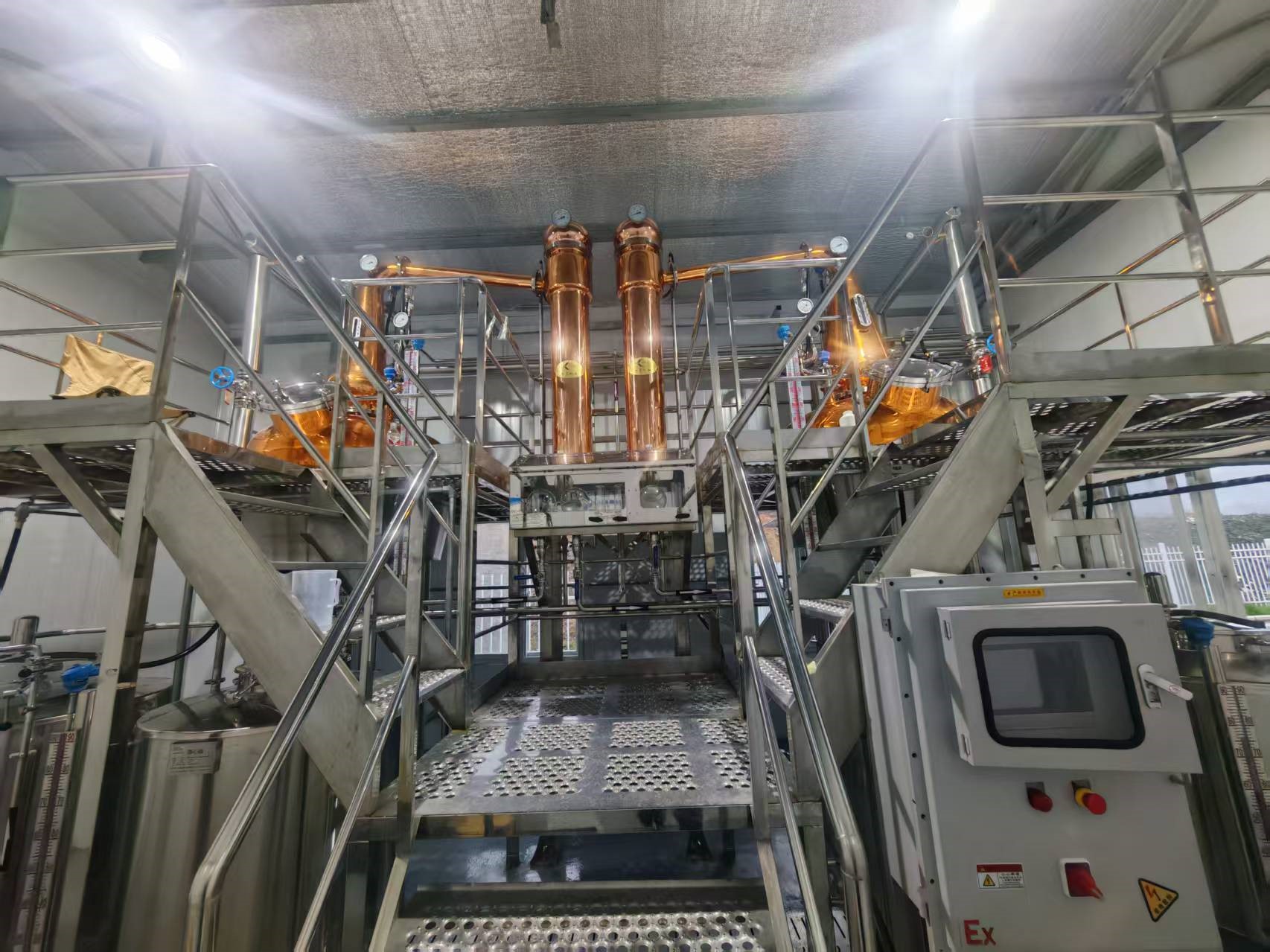 根據(jù)不同釀酒原料的組分構(gòu)成,可為用戶設(shè)計(jì)選用不同參數(shù)的蒸餾機(jī)組,經(jīng)兩次蒸餾,可獲得濃度為68-75%(V/V)威士忌原酒,這種方法生產(chǎn)出的蒸餾酒,能很好的分離出蒸餾的二次產(chǎn)物,便于剔除具有粗糙刺激味的易揮發(fā)的高級(jí)醇中的不理想成分,使成品酒中蘊(yùn)含的組分豐富協(xié)調(diào),原料香氣濃郁,酒體豐滿細(xì)膩,余味甘烈悠長(zhǎng)。